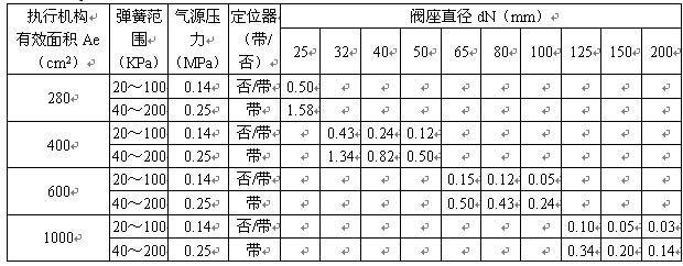 产品说明: 执行机构 附 件(根据要求配置) 表1 Kv值和行程